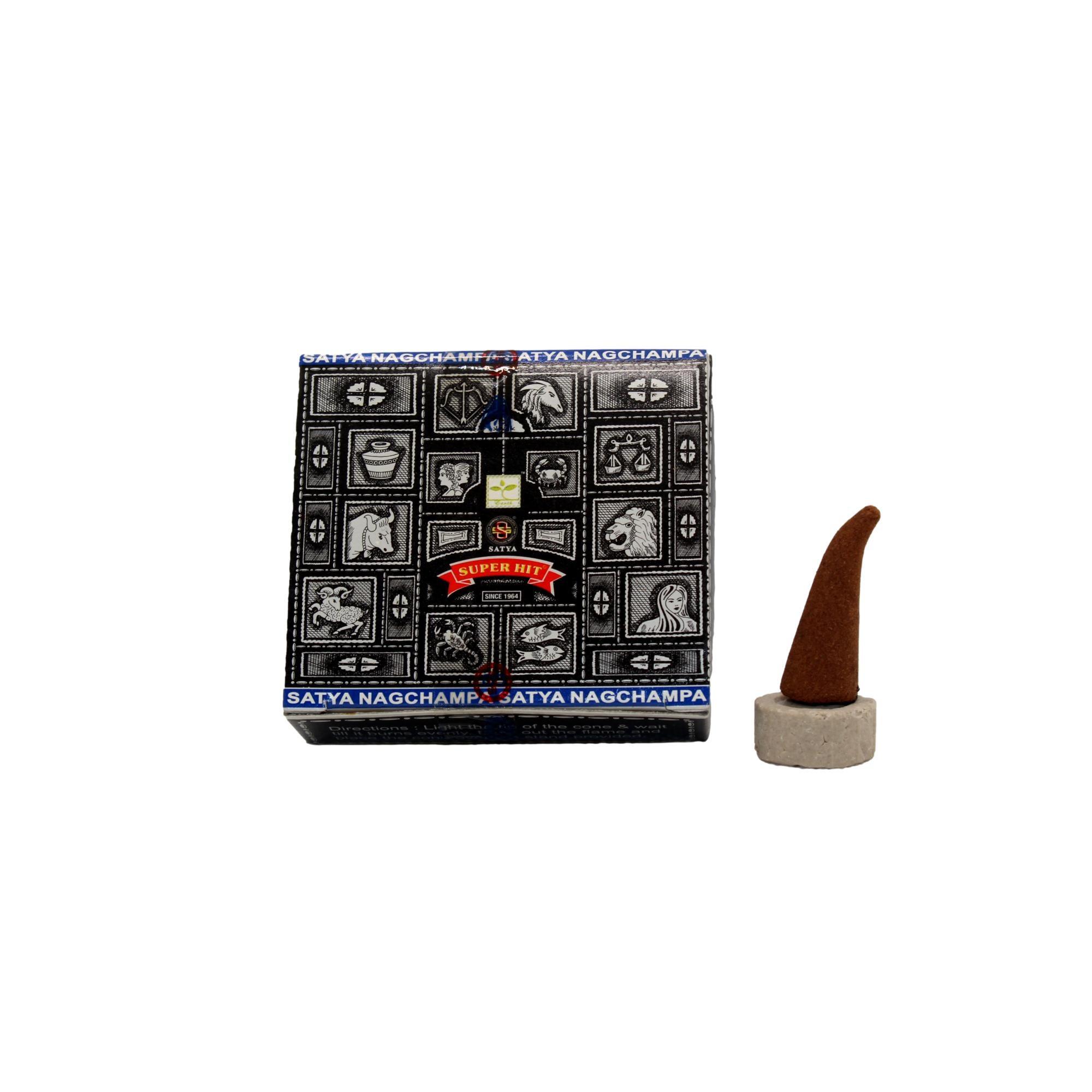 O incenso em cone Satya Super Hit Nagchampa é um produto de alta qualidade da renomada marca internacional Satya. Com um aroma doce e revigorante, é um deleite para os sentidos, relaxando o ambiente e purificando a alma. Recomendado pela nossa loja online.