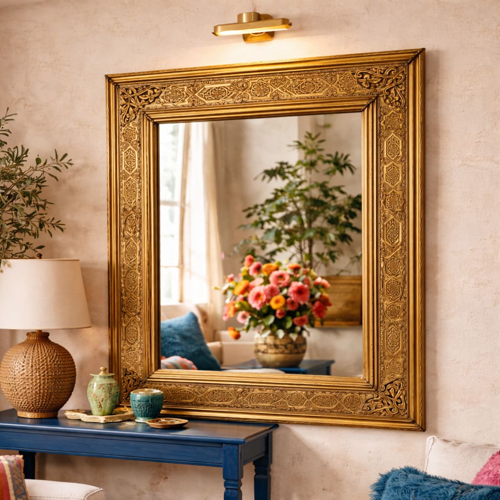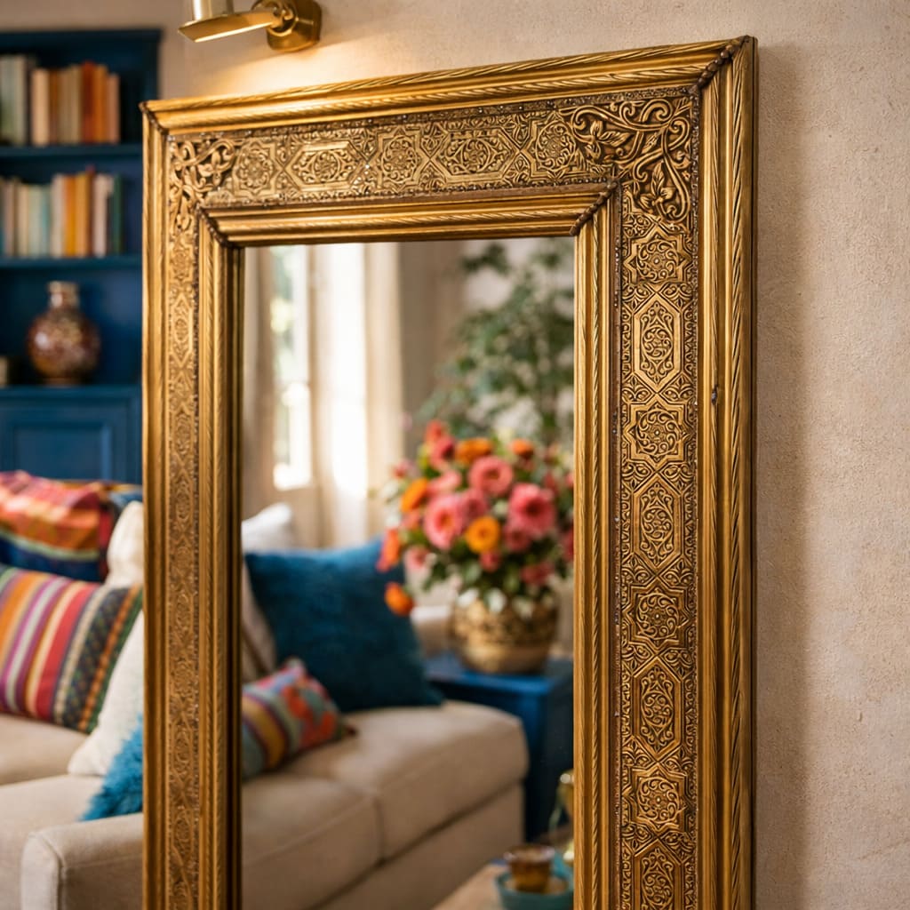 Feito à mão, este espelho dourado inspira elegância, modernidade e um toque andaluz marcante.
