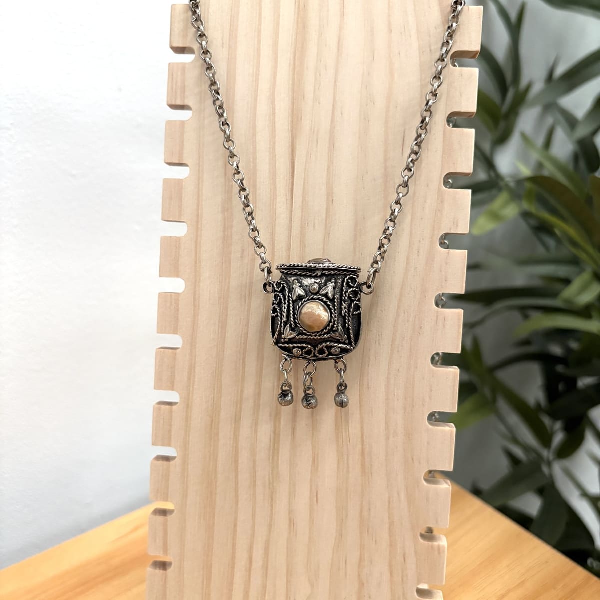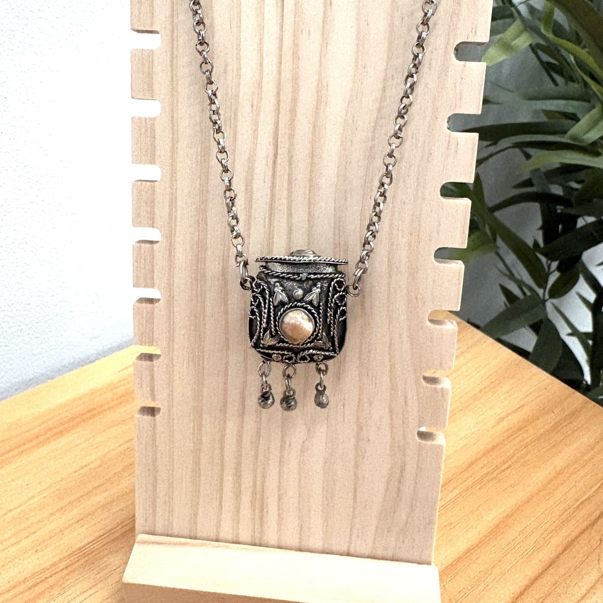 Pingente marroquino feito de alpaca e pedra natural.