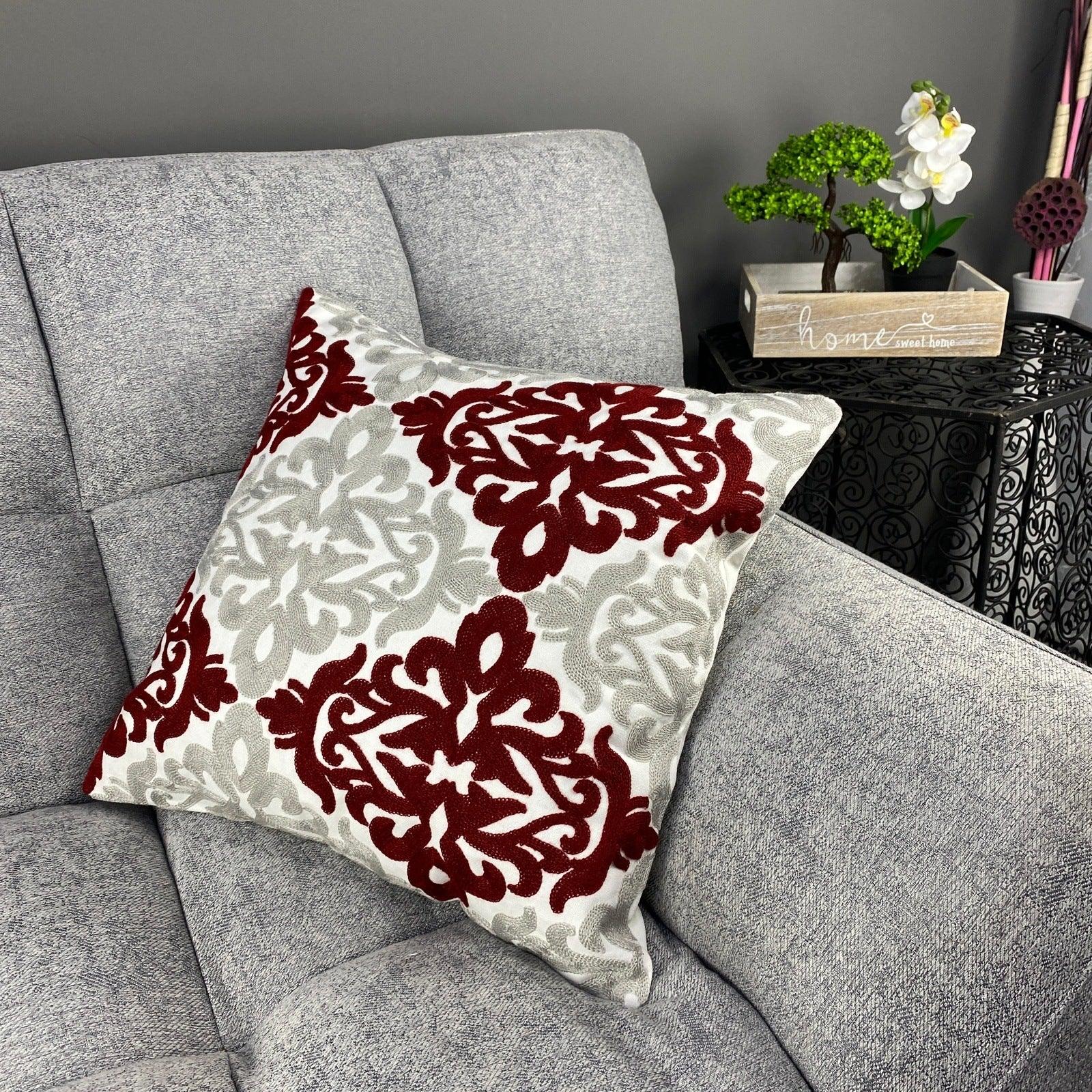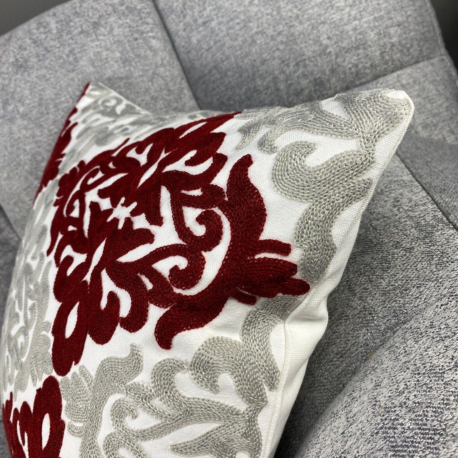 Uma capa de almofada floral moderna, criada para trazer um toque árabe vibrante ao seu quarto ou sala de estar. Ela complementa qualquer estilo de decoração, tornando o ambiente mais convidativo e aconchegante. A capa de almofada floral é 100% feita à mão com algodão natural e bordada com carinho!