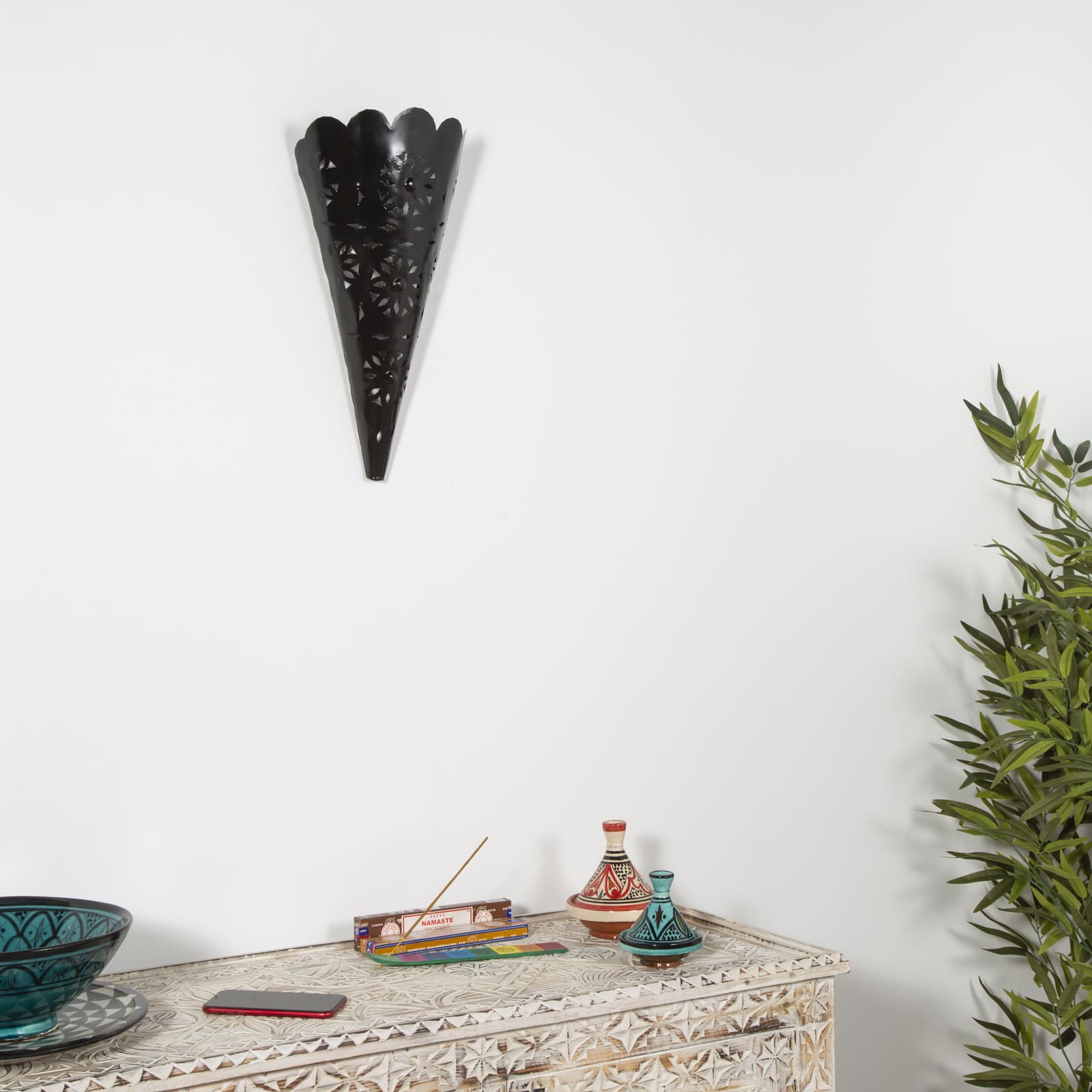 Aplique de parede árabe artesanal em ferro forjado.