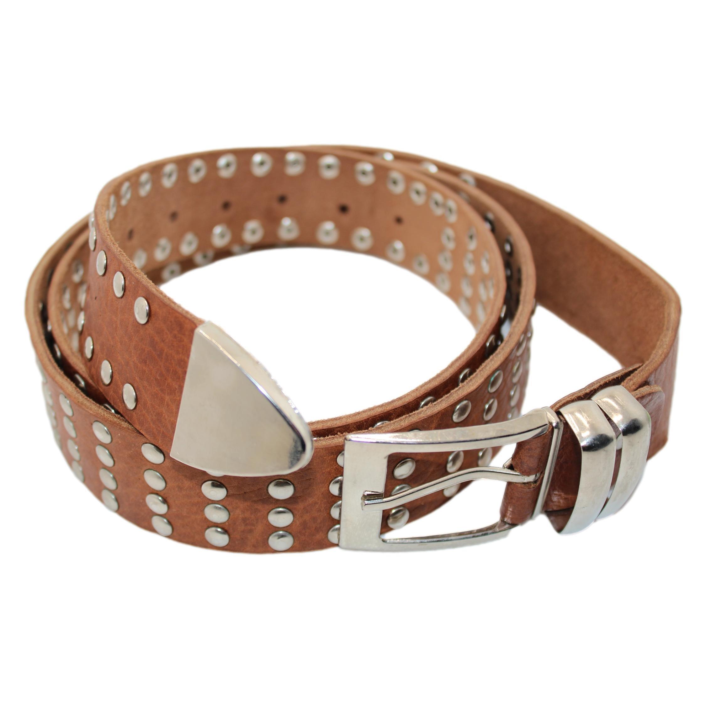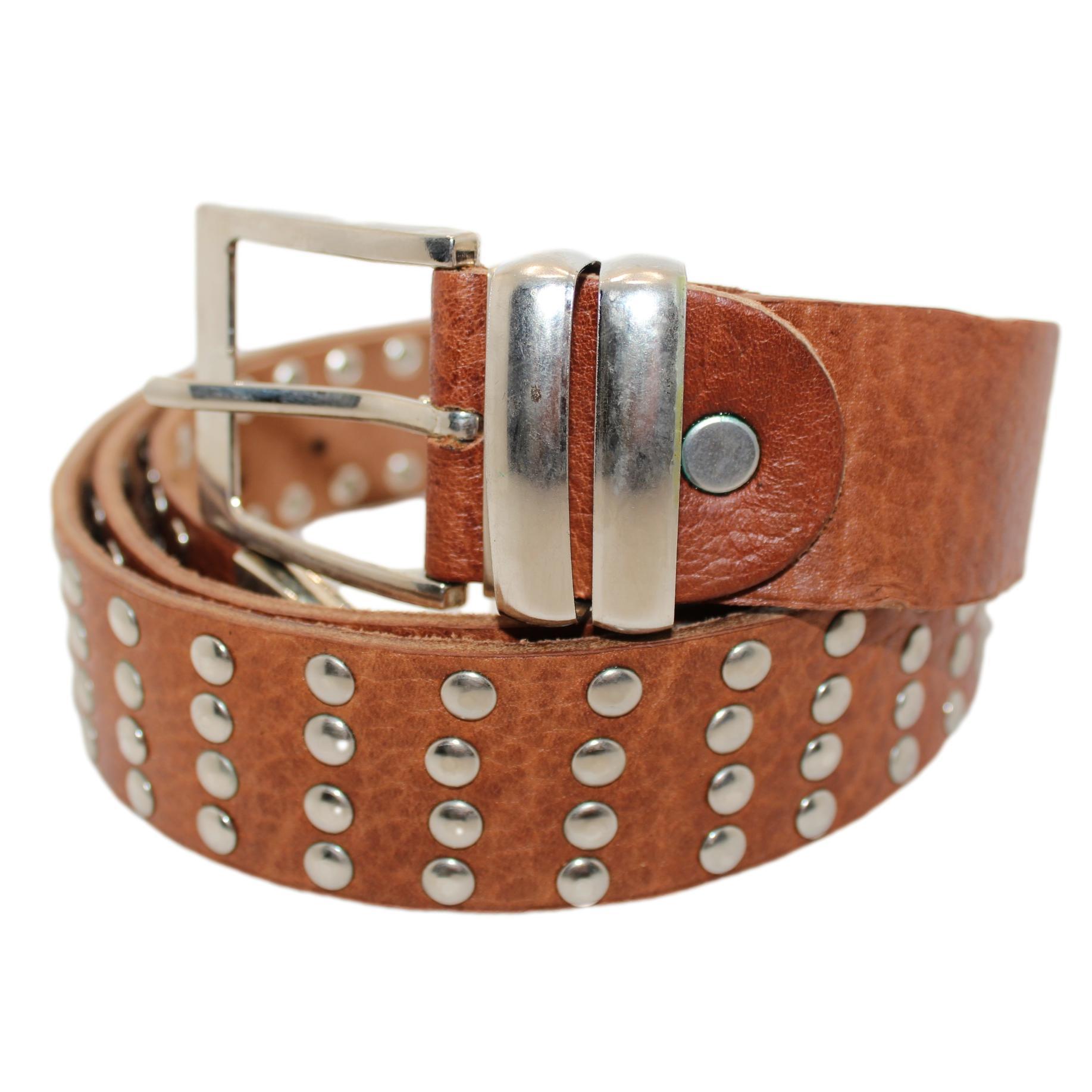 Cinto marroquino em couro natural com tachas metálicas, estilo rocker. Autêntico produto de couro 100% artesanal do sul de Marrocos. Este cinto marroquino é unissex. Cor natural do couro.