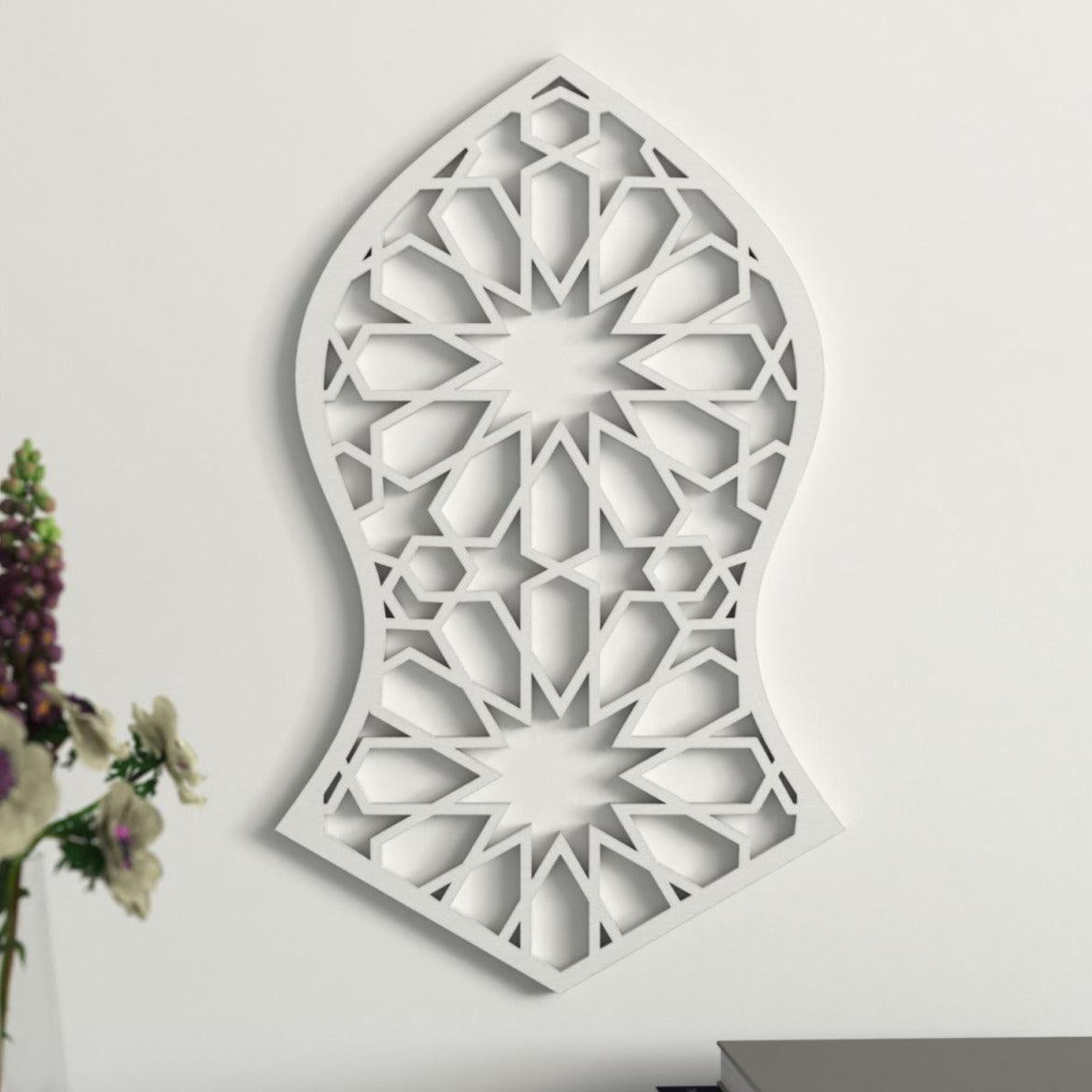 Obra de arte moderna em estilo árabe, feita com treliças de madeira, autêntica decoração árabe para sua casa. Com um design em forma de estrela, que remete às decorações da Alhambra e do Pátio do Generalife. Projetada para adicionar um toque mourisco e contemporâneo às paredes e corredores da sua casa, cozinha ou quartos.