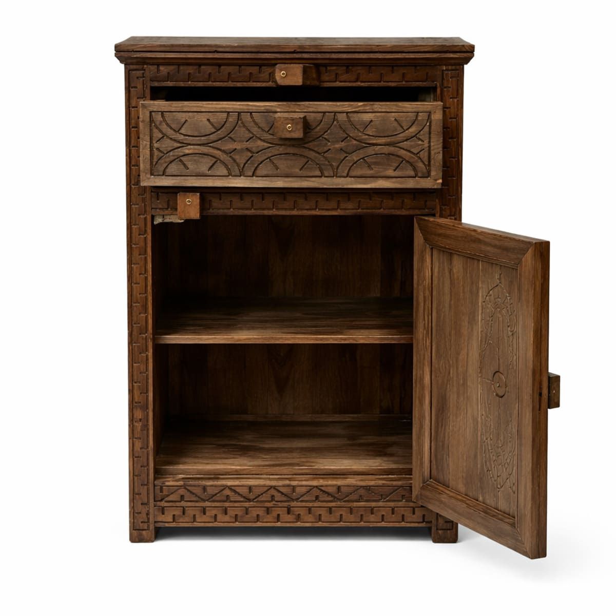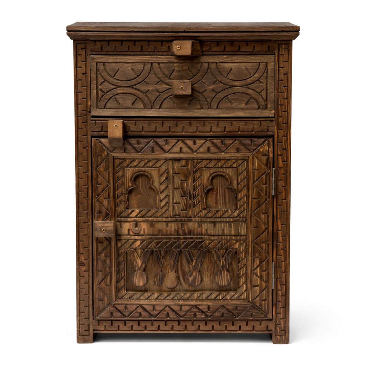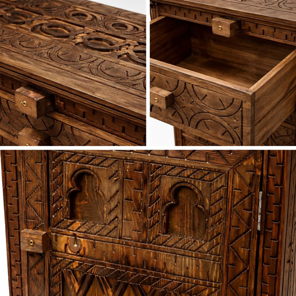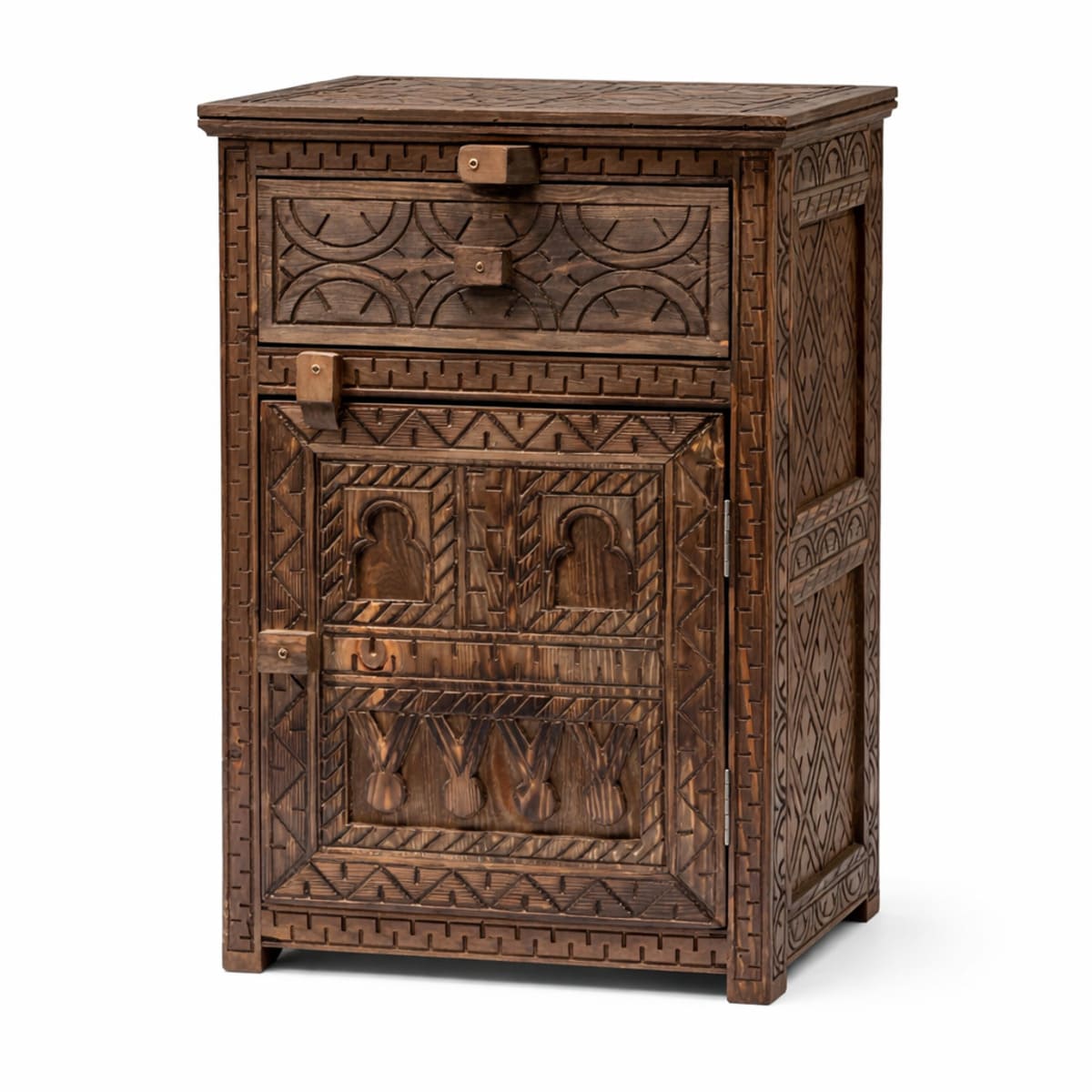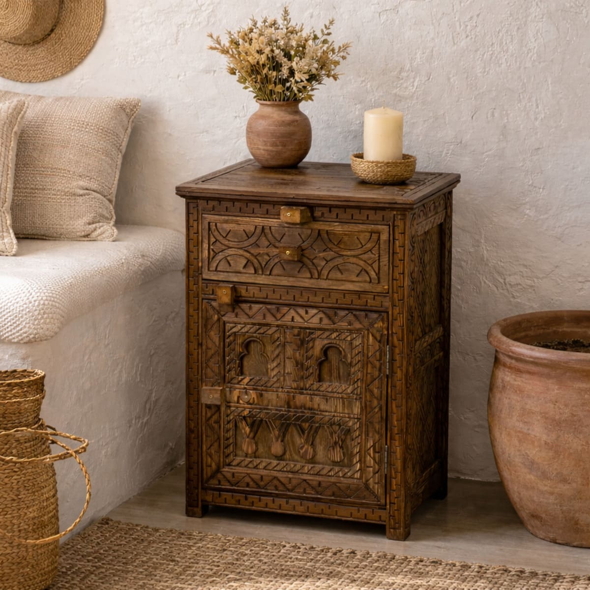 Mesita de noche bereber de cedro macizo tallada a mano